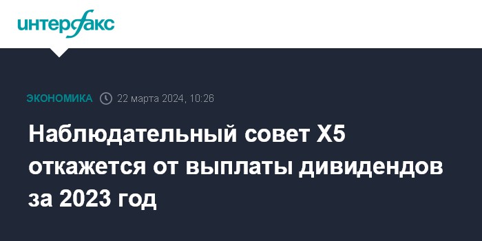 Наблюдательный совет X5 откажется от выплаты дивидендов за 2023 год