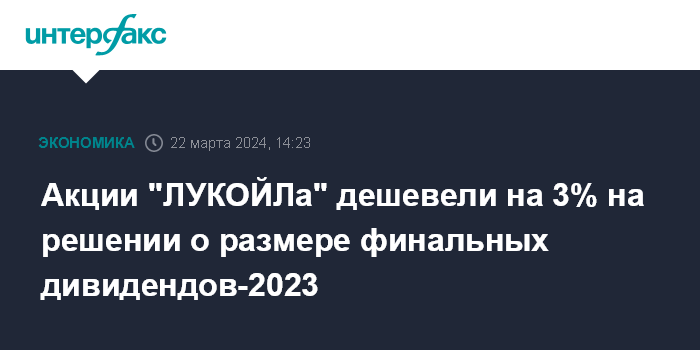 Акции "ЛУКОЙЛа" дешевели на 3% на решении о размере финальных дивидендов-2023