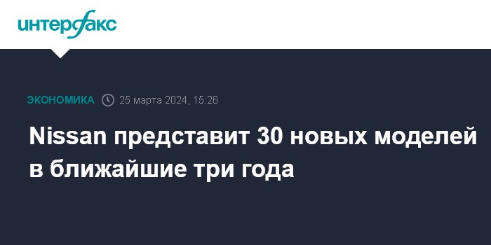 Москва. 25 марта. INTERFAX.RU - Японский автопроизводитель Nissan в ближайшие три года Nissan представит 30 новых моделей, включая 16 моделей электромобилей, говорится в новой среднесрочной стратегии компании.