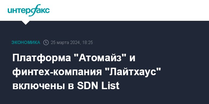 Платформа "Атомайз" и финтех-компания "Лайтхаус" включены в SDN List
