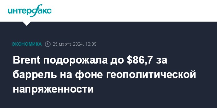 Brent подорожала до $86,7 за баррель на фоне геополитической напряженности