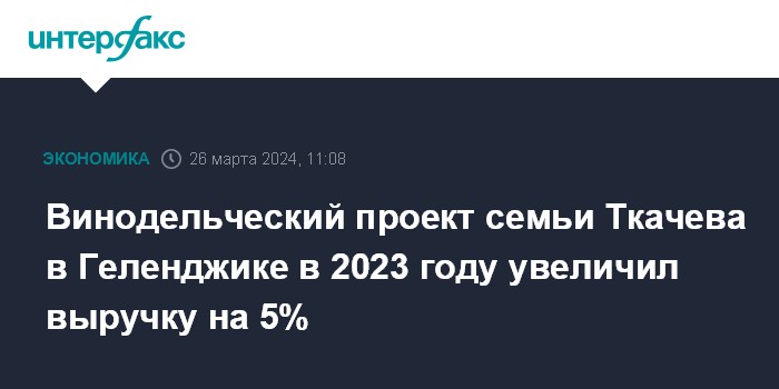 Винодельческий проект семьи Ткачева в Геленджике в 2023 году увеличил выручку на 5%