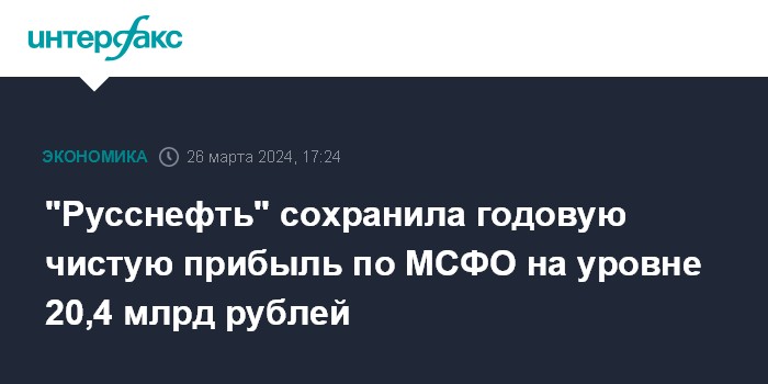 "Русснефть" сохранила годовую чистую прибыль по МСФО на уровне 20,4 млрд рублей