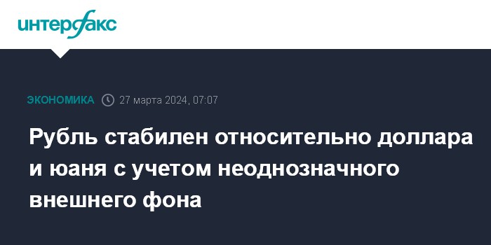По мнению экспертов "Интерфакс-ЦЭА", рубль стабилен в условиях неоднозначных внешних сигналов: мировые рынки капитала меняются разнонаправленно, нефтяные котировки снижаются. При этом нацвалюта ощущает поддержку от компаний-экспортеров, которые перед единым днем уплаты налогов, 28 марта, создают спрос на рублевую ликвидность. В этот день в бюджет должны быть перечислены НДС, налог на прибыль, акцизы, НДПИ и квартальный НДД. По оценке аналитиков SberCIB Investment Research, объем налоговых выплат в этом месяце может достичь 2 трлн рублей.