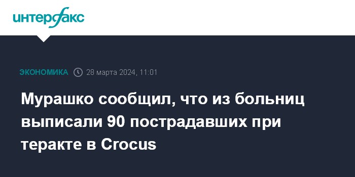 Мурашко сообщил, что из больниц выписали 90 пострадавших при теракте в Crocus