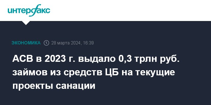 АСВ в 2023 г. выдало 0,3 трлн руб. займов из средств ЦБ на текущие проекты санации