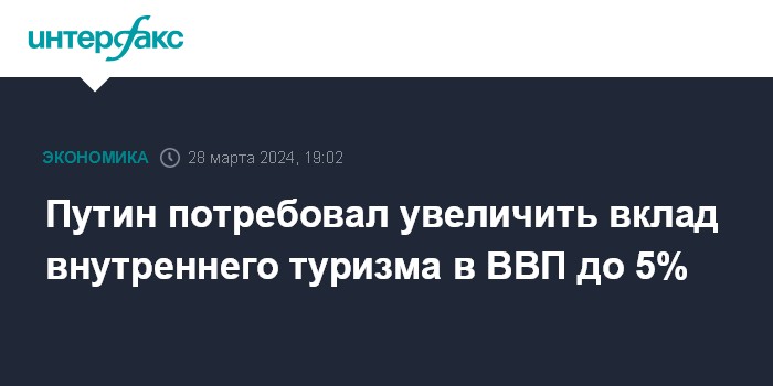 Путин потребовал увеличить вклад внутреннего туризма в ВВП до 5%