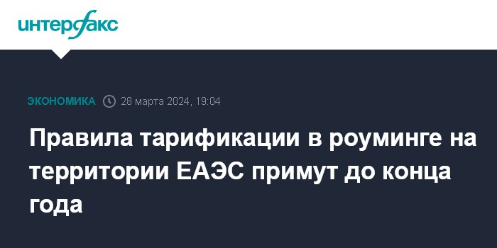 Москва. 28 марта. INTERFAX.RU - Правила тарификации в роуминге на территории Евразийского экономического союза будут приняты до конца текущего года, сообщила пресс-служба Евразийской экономической комиссии.