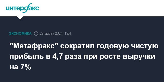 "Метафракс" сократил годовую чистую прибыль в 4,7 раза при росте выручки на 7%