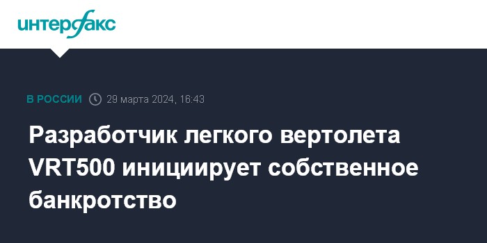 Разработчик легкого вертолета VRT500 инициирует собственное банкротство