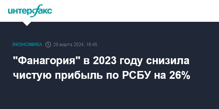 "Фанагория" в 2023 году снизила чистую прибыль по РСБУ на 26%