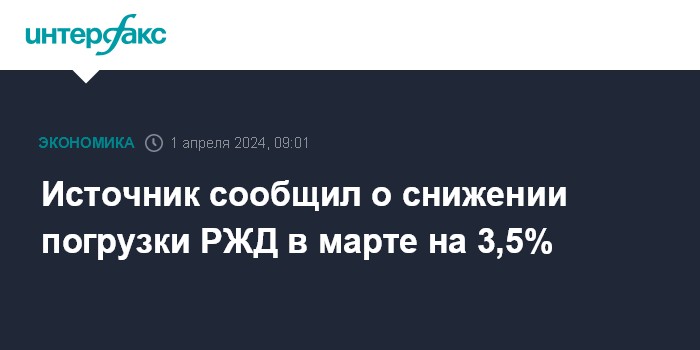 Источник сообщил о снижении погрузки РЖД в марте на 3,5%
