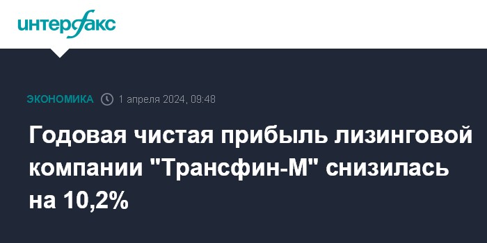 Годовая чистая прибыль лизинговой компании "Трансфин-М" снизилась на 10,2%