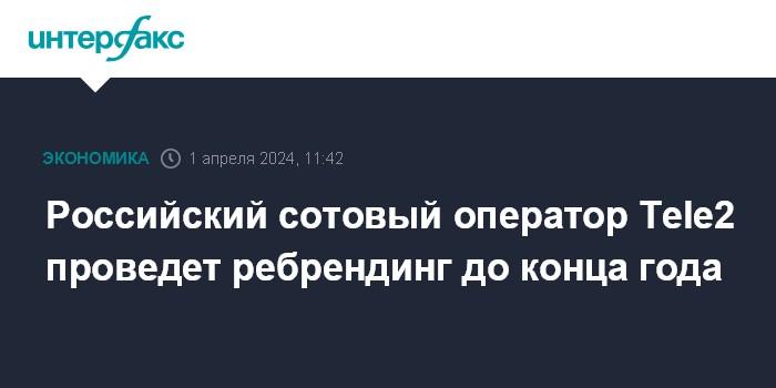 Москва. 1 апреля. INTERFAX.RU - Российский сотовый оператор Tele2 решил не продлевать лицензию одноименного шведского холдинга на использование бренда, представит новый логотип и название до конца 2024 года, говорится в сообщении компании.