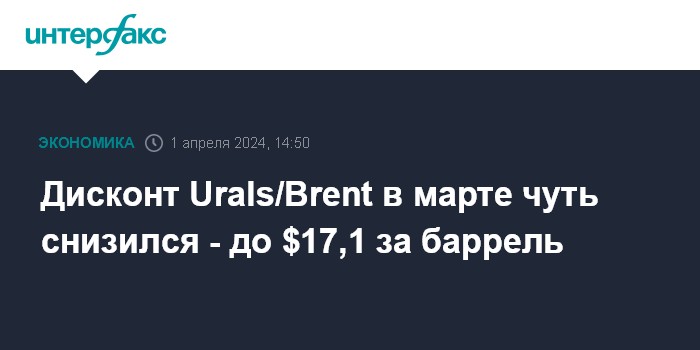 Дисконт Urals/Brent в марте чуть снизился - до $17,1 за баррель