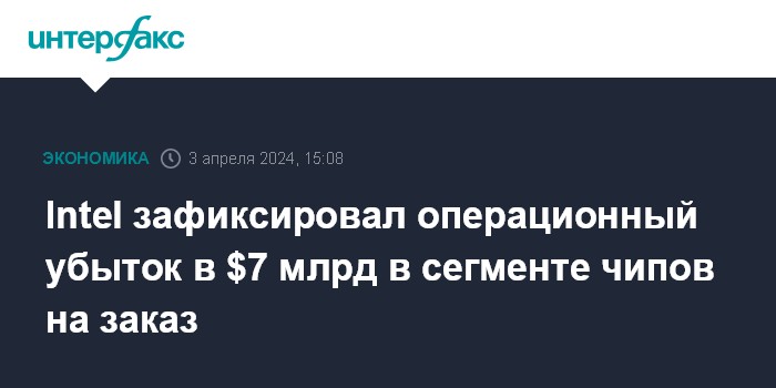 Москва. 3 апреля. INTERFAX.RU - Подразделение Intel Corp., занимающееся производством чипов на заказ (Intel Foundry), зафиксировало операционный убыток в $7 млрд в 2023 году.