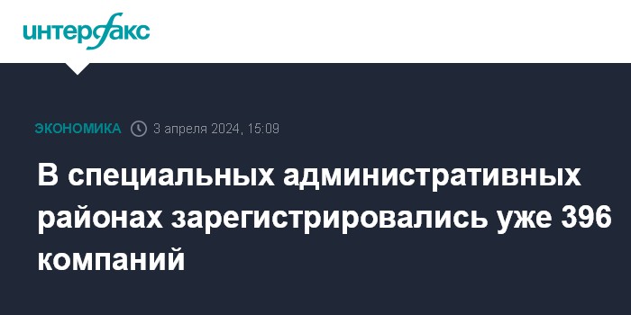 В специальных административных районах зарегистрировались уже 396 компаний