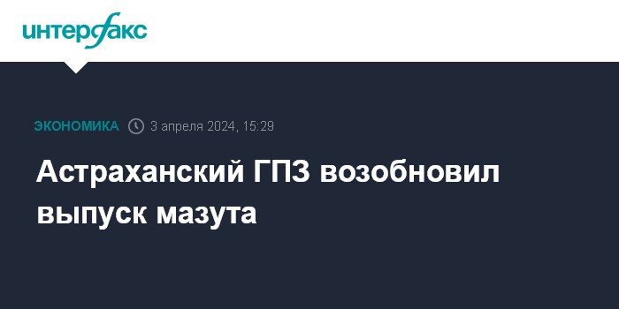 Астраханский ГПЗ возобновил выпуск мазута