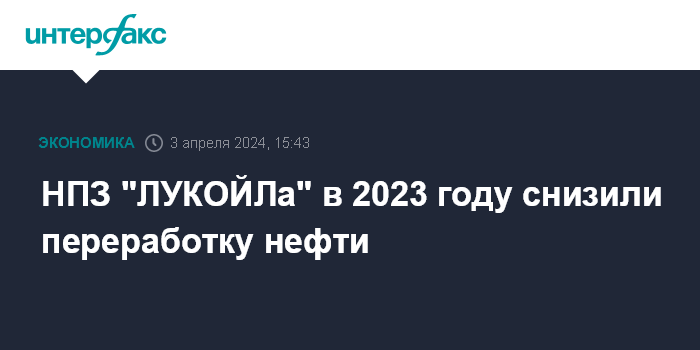 НПЗ "ЛУКОЙЛа" в 2023 году снизили переработку нефти