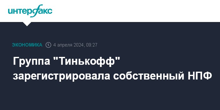Группа "Тинькофф" зарегистрировала собственный НПФ