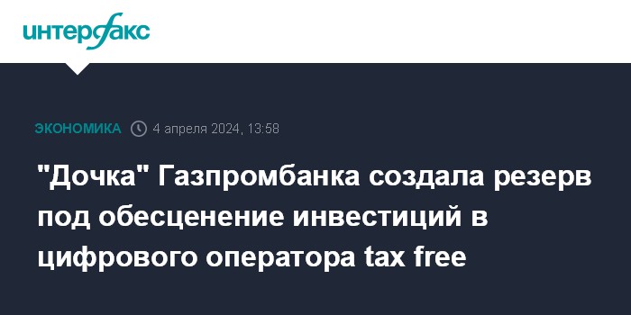 "Дочка" Газпромбанка создала резерв под обесценение инвестиций в цифрового оператора tax free