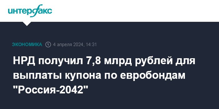 НРД получил 7,8 млрд рублей для выплаты купона по евробондам "Россия-2042"