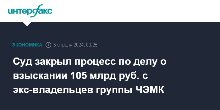 Суд закрыл процесс по делу о взыскании 105 млрд руб. с экс-владельцев группы ЧЭМК