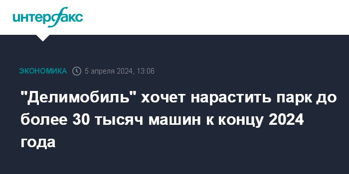 Москва. 5 апреля. INTERFAX.RU - Каршеринговый сервис "Делимобиль" к концу 2024 года планирует нарастить автопарк до более 30 тысяч автомобилей, рассказала СЕО компании Елена Бехтина на онлайн-конференции, посвященной результатам ПАО "Каршеринг Руссия" за 2023 год.