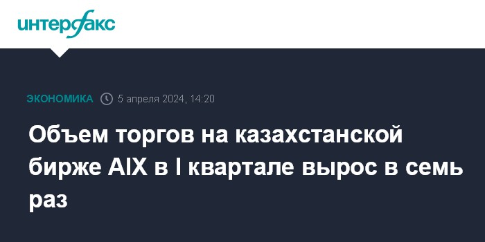 Москва. 5 апреля. INTERFAX.RU - Совокупный объем торгов на бирже Международного финансового центра "Астана" (Astana international Exchange, AIX) в январе-марте 2024 года вырос в семь раз в годовом исчислении, составив $463 млн, сообщила пресс-служба биржи.