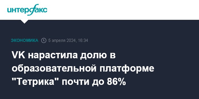 В августе 2023 года VK сообщала о намерении увеличить долю до более 90%."Тетрика" будет объединена с "Учи.Дома" (часть принадлежащей холдингу образовательной платформы "Учи.ру").