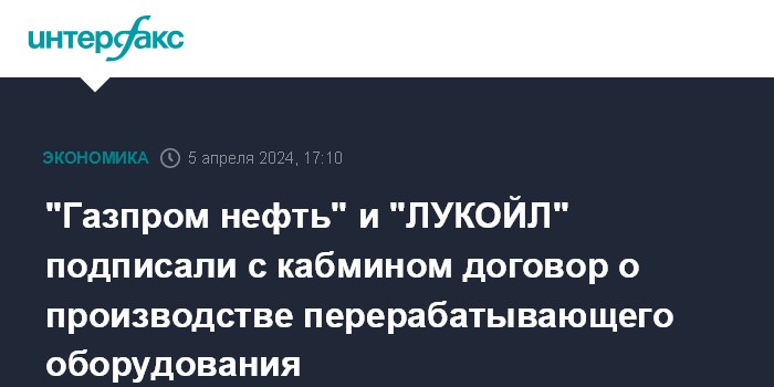 "Газпром нефть" и "ЛУКОЙЛ" подписали с кабмином договор о производствe перерабатывающего оборудования