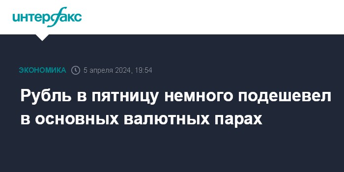 Как отмечают эксперты "Интерфакс-ЦЭА", рубль немного подешевел к основным валютам по итогам торгов в пятницу перед выходными днями и в ожидании новых стимулов к движению. Сниженная активность участников рынка в последний день недели была обусловлена, в том числе, тем, что в четверг и пятницу были закрыты биржи материкового Китая (Фестиваль Цин Мин). Из-за этого ЦБ РФ 4 и 5 апреля не проводил расчеты по операциям с юанем.