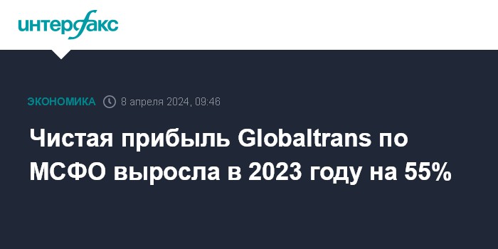 Москва. 8 апреля. INTERFAX.RU - Чистая прибыль Globaltrans по МСФО выросла в 2023 г. на 55% и составила 38,6 млрд руб. против 24,9 млрд руб. годом ранее, сообщила компания.