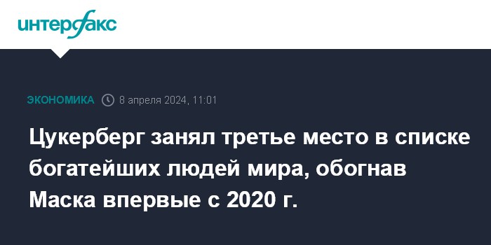 Цукерберг занял третье место в списке богатейших людей мира, обогнав Маска впервые с 2020 г.