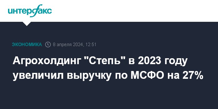 Агрохолдинг "Степь" в 2023 году увеличил выручку по МСФО на 27%