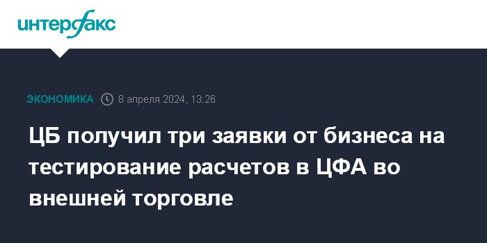 ЦБ получил три заявки от бизнеса на тестирование расчетов в ЦФА во внешней торговле