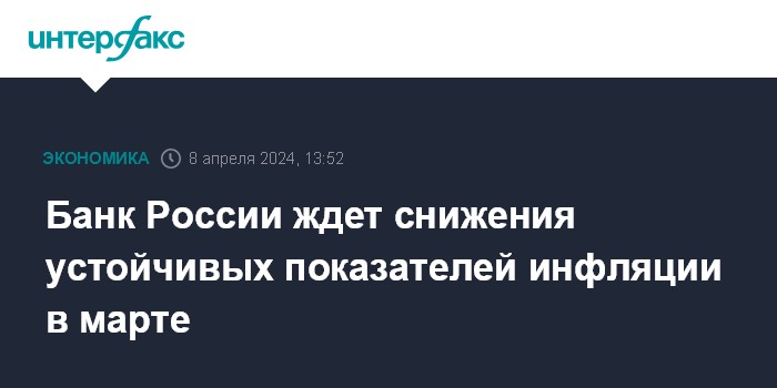 Банк России ждет снижения устойчивых показателей инфляции в марте