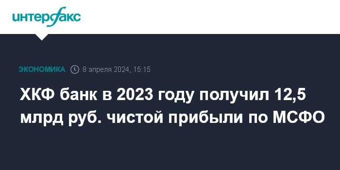 Москва. 8 апреля. INTERFAX.RU - ХКФ банк (работает под брендом Хоум банк) в 2023 году получил 12,5 млрд рублей чистой прибыли по МСФО, говорится в сообщении кредитной организации.