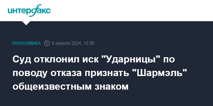 Москва. 9 апреля. INTERFAX.RU - Суд по интеллектуальным правам во вторник отклонил заявление АО "Кондитерская фабрика "Ударница" (Москва) о признании недействительным решения Роспатента, отказавшегося 18 августа 2023 года признать товарный знак "Шармэль" общеизвестным в отношении товаров 30-го (пастила, зефир, зефир в шоколаде) класса МКТУ.
