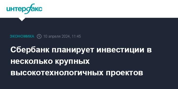 Сбербанк планирует инвестиции в несколько крупных высокотехнологичных проектов