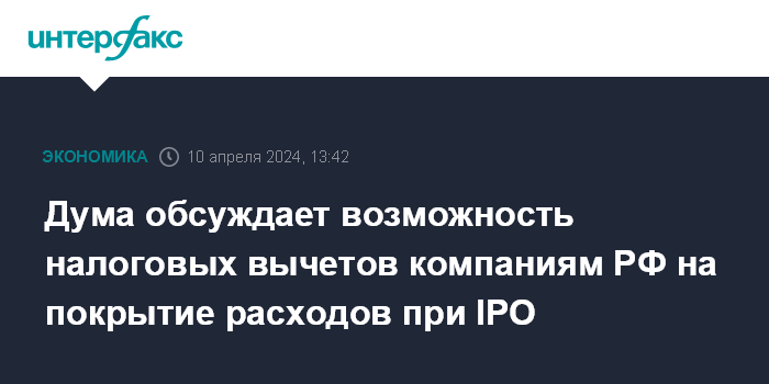 Дума обсуждает возможность налоговых вычетов компаниям РФ на покрытие расходов при IPO