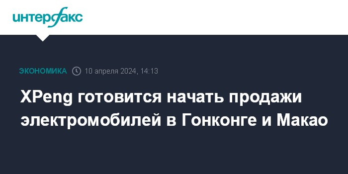 Москва. 10 апреля. INTERFAX.RU - Китайский производитель электромобилей XPeng Inc. готовится начать продажи в Гонконге и Макао.