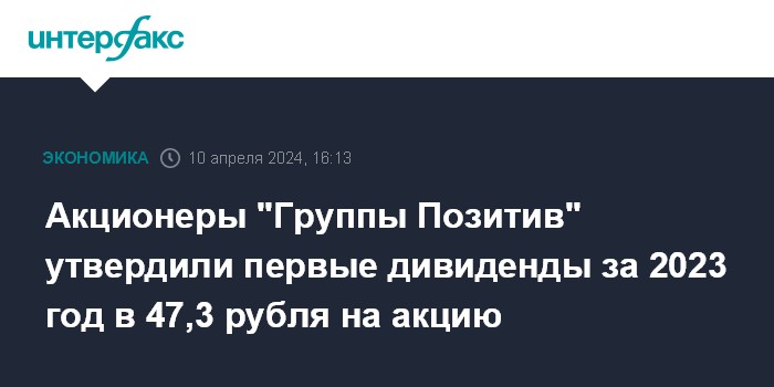 Акционеры "Группы Позитив" утвердили первые дивиденды за 2023 год в 47,3 рубля на акцию