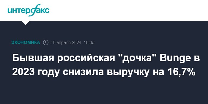 Бывшая российская "дочка" Bunge в 2023 году снизила выручку на 16,7%