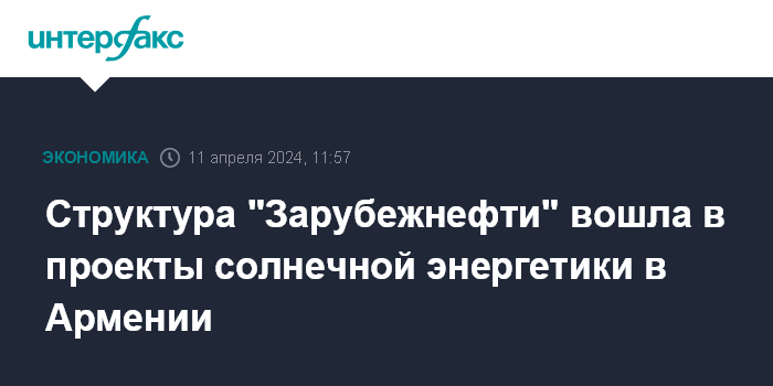 Структура "Зарубежнефти" вошла в проекты солнечной энергетики в Армении