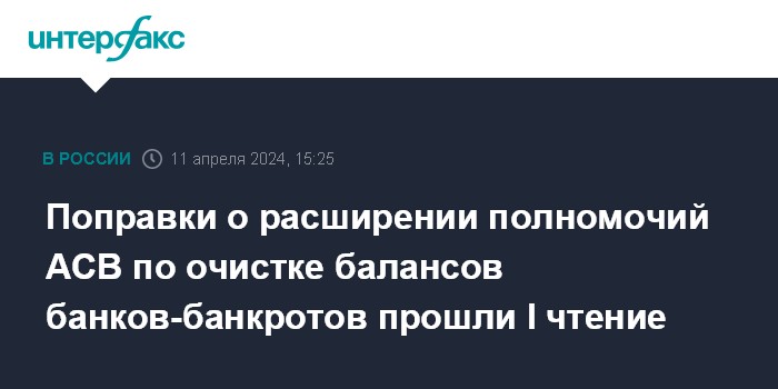 Поправки о расширении полномочий АСВ по очистке балансов банков-банкротов прошли I чтение