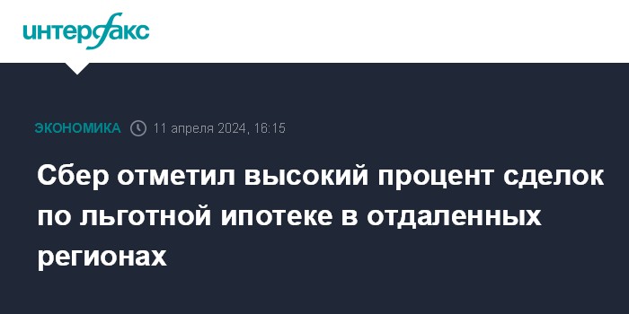 Сбер отметил высокий процент сделок по льготной ипотеке в отдаленных регионах