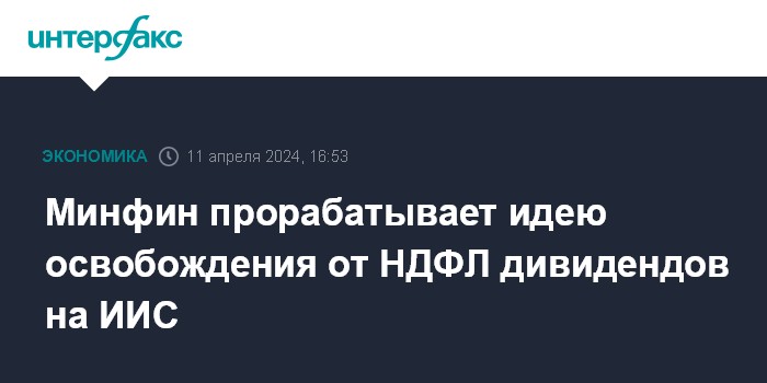 Москва. 11 апреля. INTERFAX.RU - Минфин РФ прорабатывает предложение по освобождению от НДФЛ дивидендов на акции российских компаний, приобретенные на индивидуальный инвестиционный счет (ИИС), заявил замминистра финансов Иван Чебесков журналистам в кулуарах съезда Ассоциации банков России.
