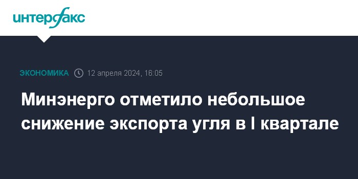 Москва. 12 апреля. INTERFAX.RU - Экспорт угля из РФ в январе-марте немного снизился к уровню 2023 года, но Минэнерго не планирует пересматривать прогнозы по году, сообщил журналистам замглавы ведомства Сергей Мочальников.