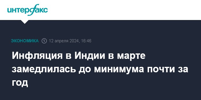 Москва. 12 апреля. INTERFAX.RU - Потребительские цены в Индии в марте выросли на 4,85% в годовом выражении - минимальными темпами с мая 2023 года, говорится в отчете статистического ведомства страны.